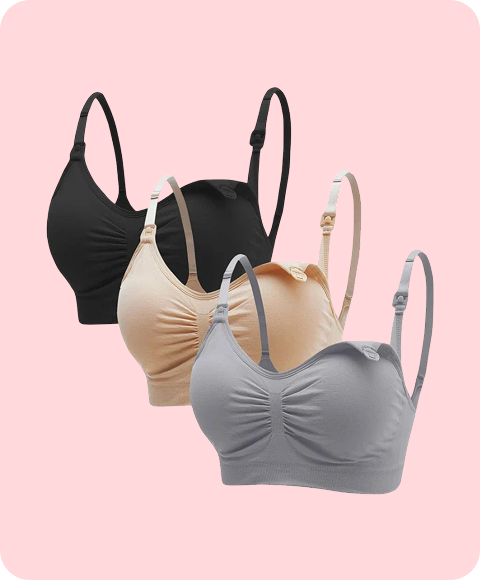 A soft, seamless 3-pack maternity bra set designed for pregnancy and nursing. Featuring gentle stretch, medium support and a ruched finish, it offers all-day comfort with a flexible fit that adapts to your changing body.